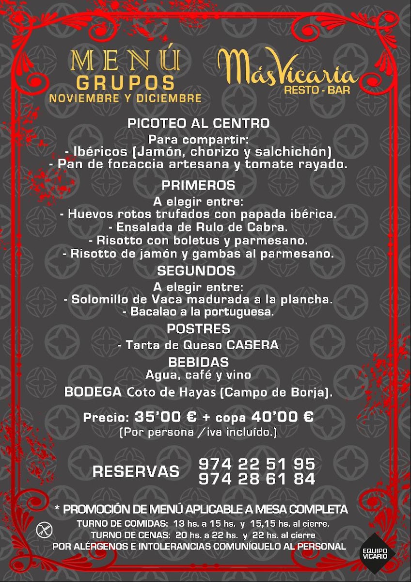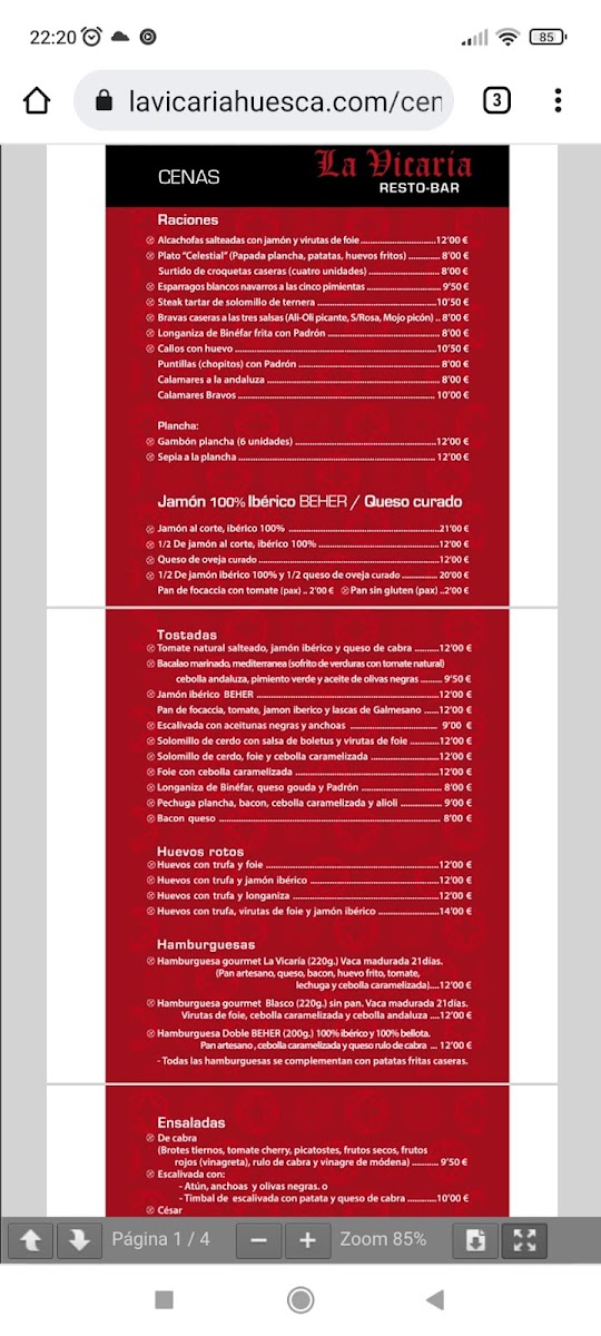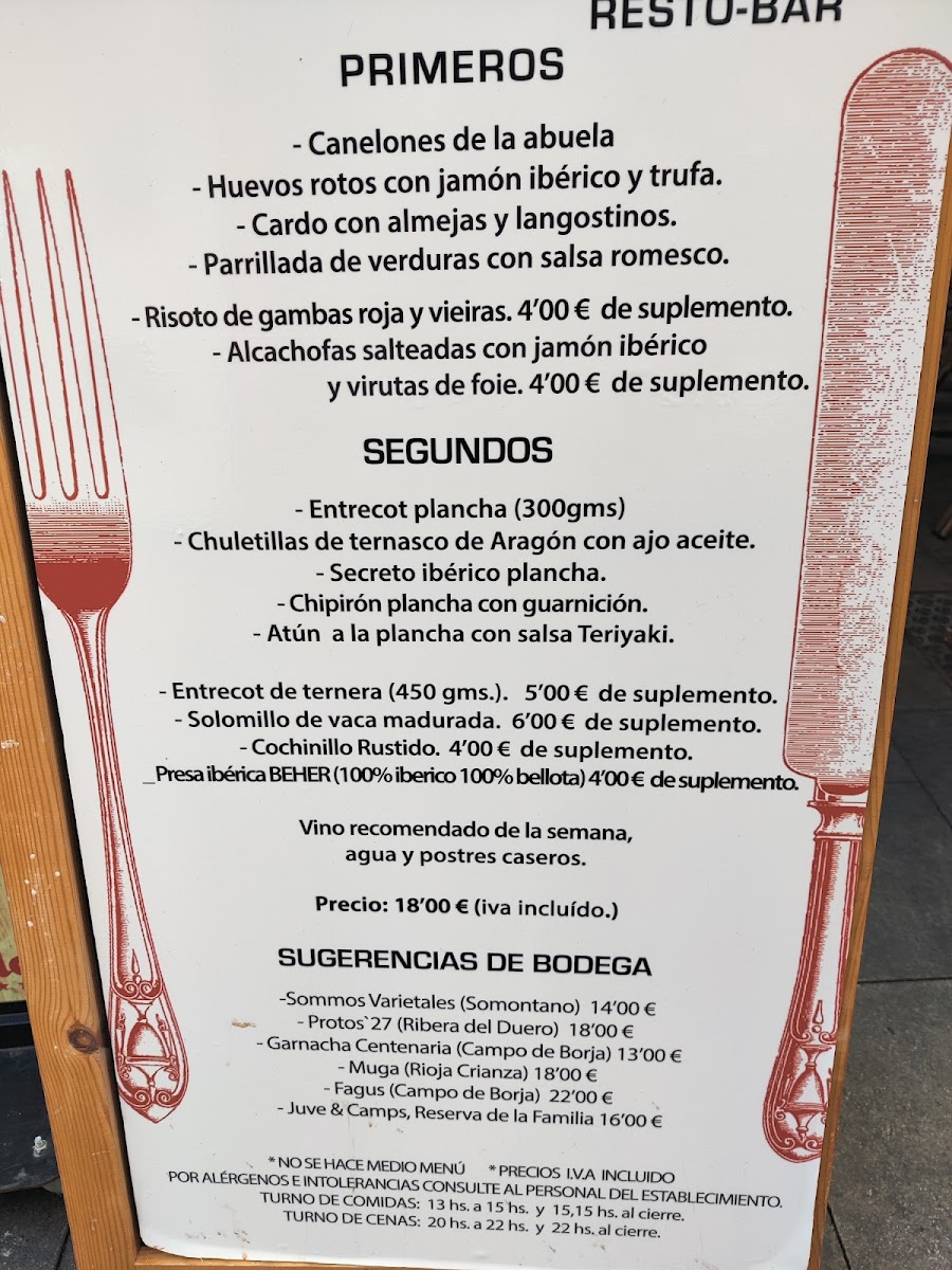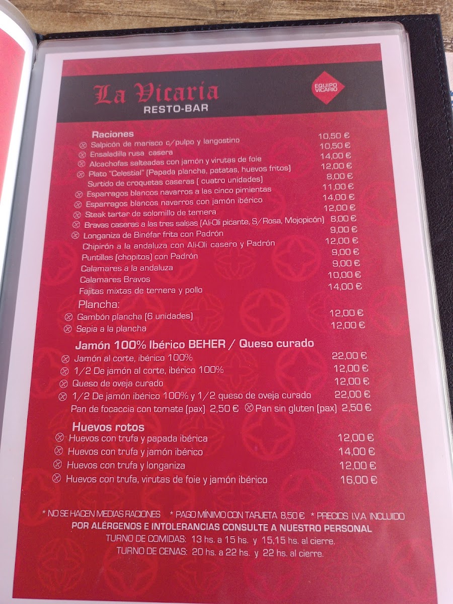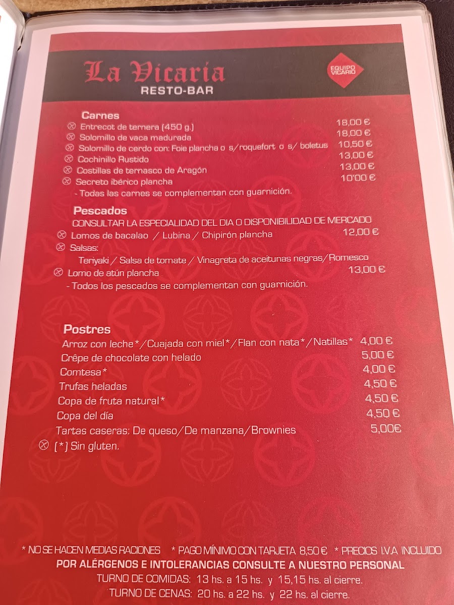 Introducing La Vicaria Resto Bar, a charming dining destination nestled in the heart of Huesca, Spain. This establishment offers a delightful fusion of homemade quality dishes praised by locals and visitors alike. With a menu that caters to varied palates, La Vicaria serves a Menú del Día for just €18.00, a delightful choice for leisurely lunches, and a more elaborate Menú de Cenas at €35.00 for those special evenings.
